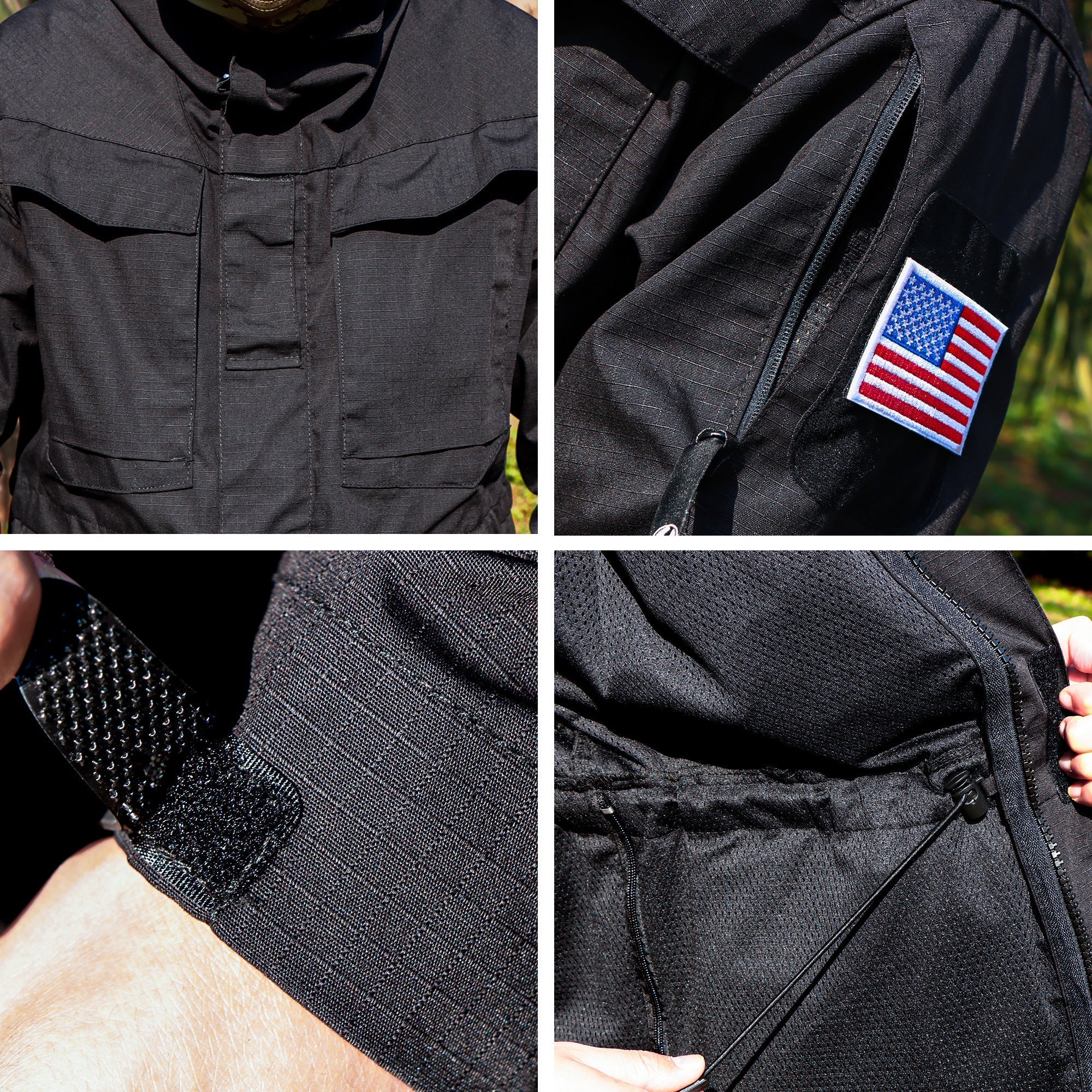 • Simple but stunning. Multiple pockets for convenience. A roll-up hood, waist draw-cords, velcro cuffs to cover gloves, front concealed bidirectional zipper and velcro button.